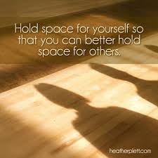 Holding space for myself when I am in a discussion with others means that I give myself a few moments to check in with myself before responding. If I feel I need more time to actually process a sticky problem, I will say so. Even my young grandchildren are learning to use this technique and will often go to their rooms to think things over when they are feeling overwhelmed. Just this little break can shift the energy in a positive way. Reframing things with a fresh perspective invariably leads to more creative problem resolution.