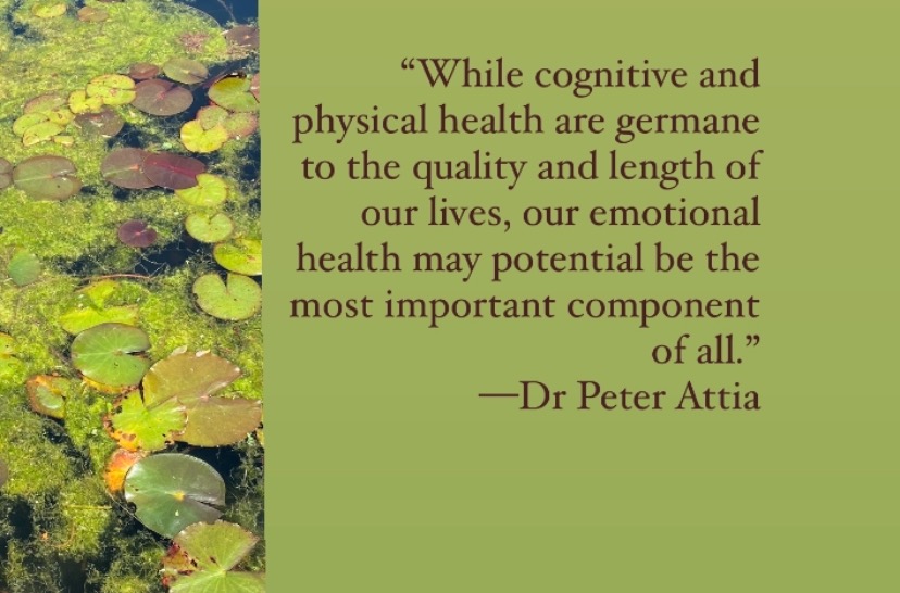 We can become very skillful at using our attention intentionally. This is so good for our brains and extremely helpful for our emotional health. Dr. Peter Attia, author of the longevity book, Outlive, reinforces the fact that we are most content and satisfied with our life – in the present moment.